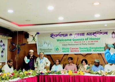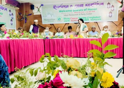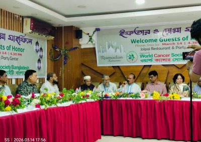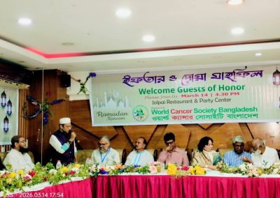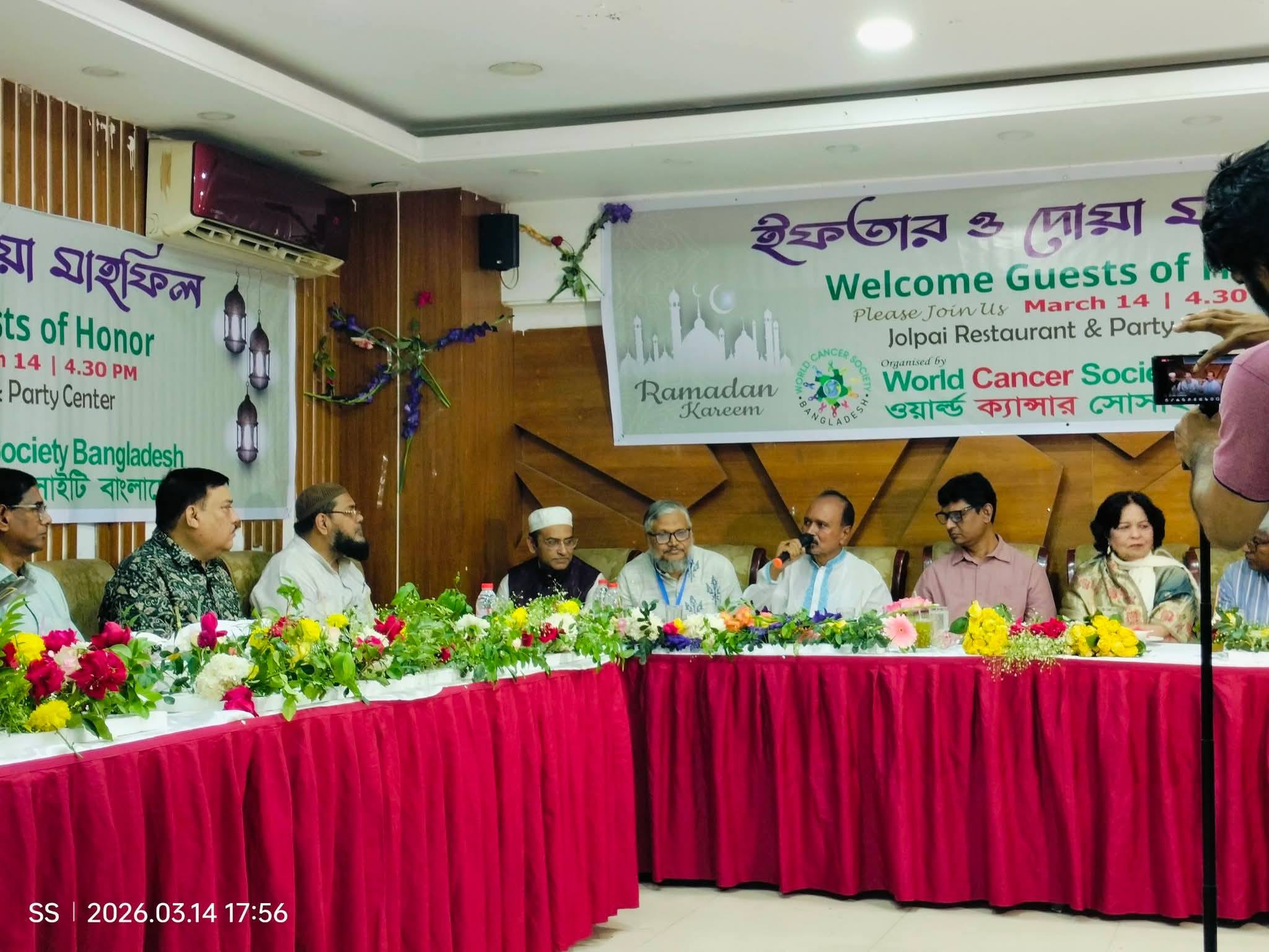 অনুষ্ঠানে সভাপতিত্ব করেন ওয়ার্ল্ড ক্যান্সার সোসাইটি বাংলাদেশের সভাপতি জনস্বাস্থ্য ও ক্যান্সার প্রতিরোধ গবেষক ড. সৈয়দ হুমায়ুন কবির। তিনি বলেন, রমজান আত্মশুদ্ধি, সহমর্মিতা ও মানবিকতার মাস। এই পবিত্র সময়ে সমাজের অসহায় ও সুবিধাবঞ্চিত মানুষের পাশে দাঁড়ানো আমাদের সবার নৈতিক ও সামাজিক দায়িত্ব।
