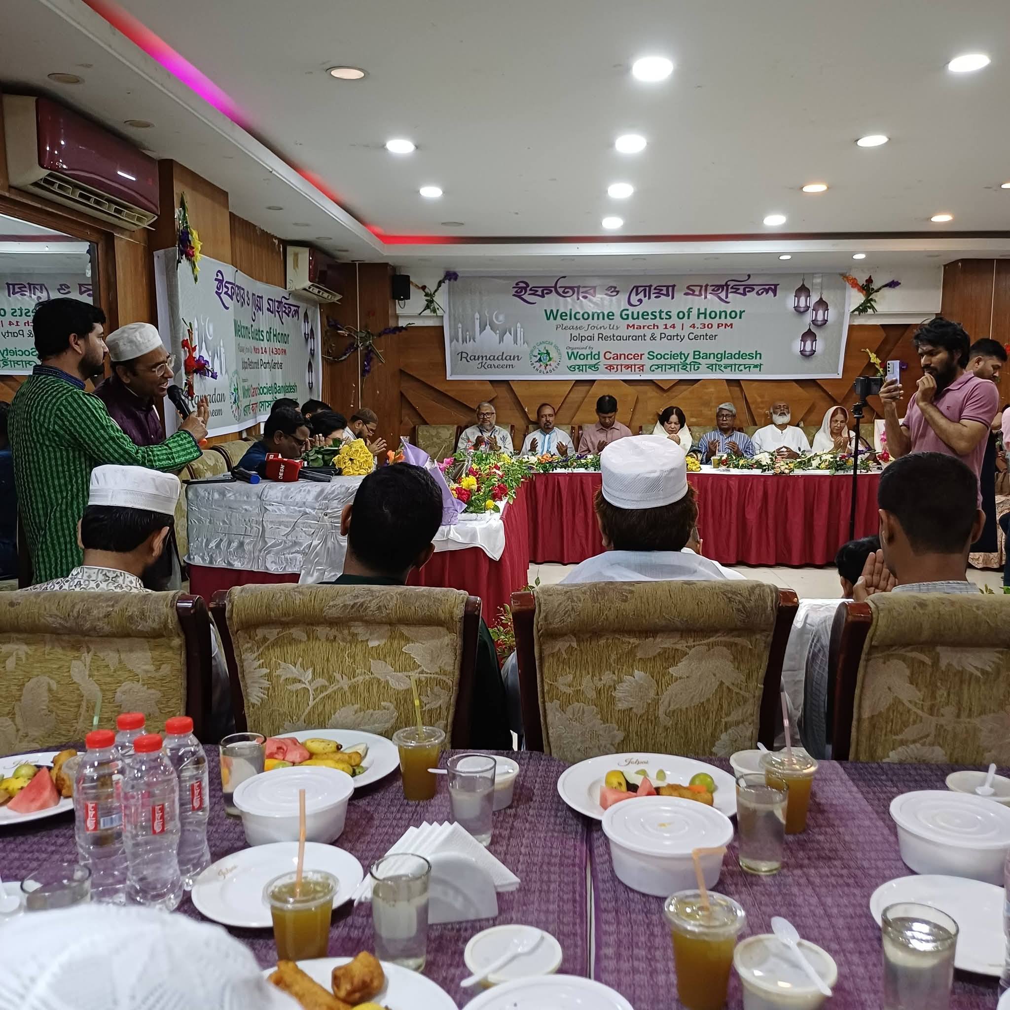 পবিত্র রমজান উপলক্ষ্যে এতিম ও সুবিধাবঞ্চিত শিশুদের নিয়ে ইফতার মাহফিলের আয়োজন করেছে ওয়ার্ল্ড ক্যান্সার সোসাইটি বাংলাদেশ। শনিবার (১৪ মার্চ) রাজধানীর মগবাজারের জলপাই রেস্টুরেন্ট অ্যান্ড পার্টি সেন্টারে এ ইফতার আয়োজন অনুষ্ঠিত হয়।